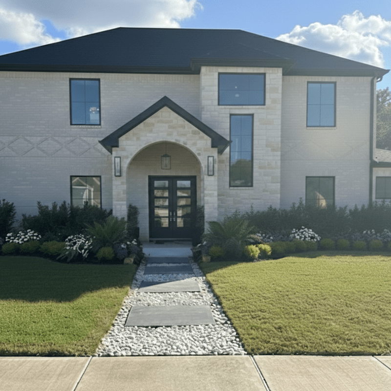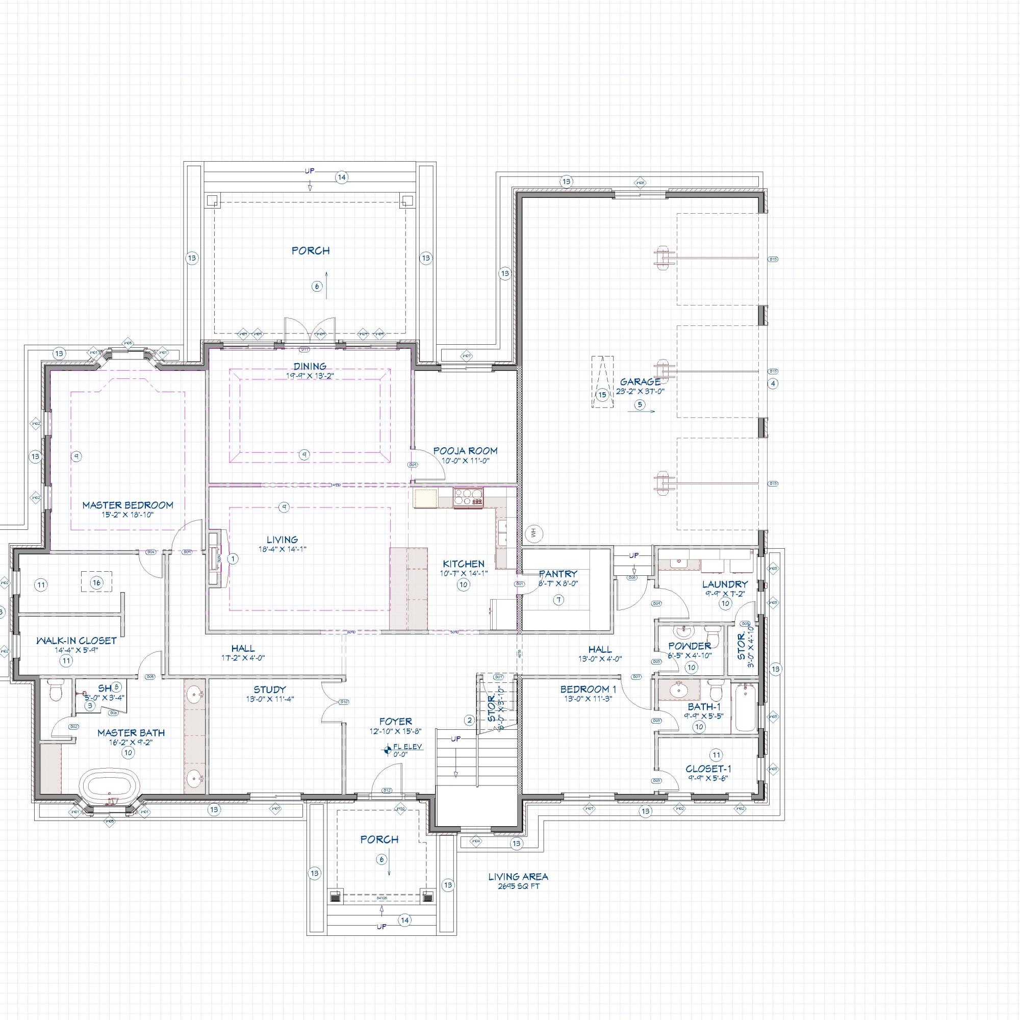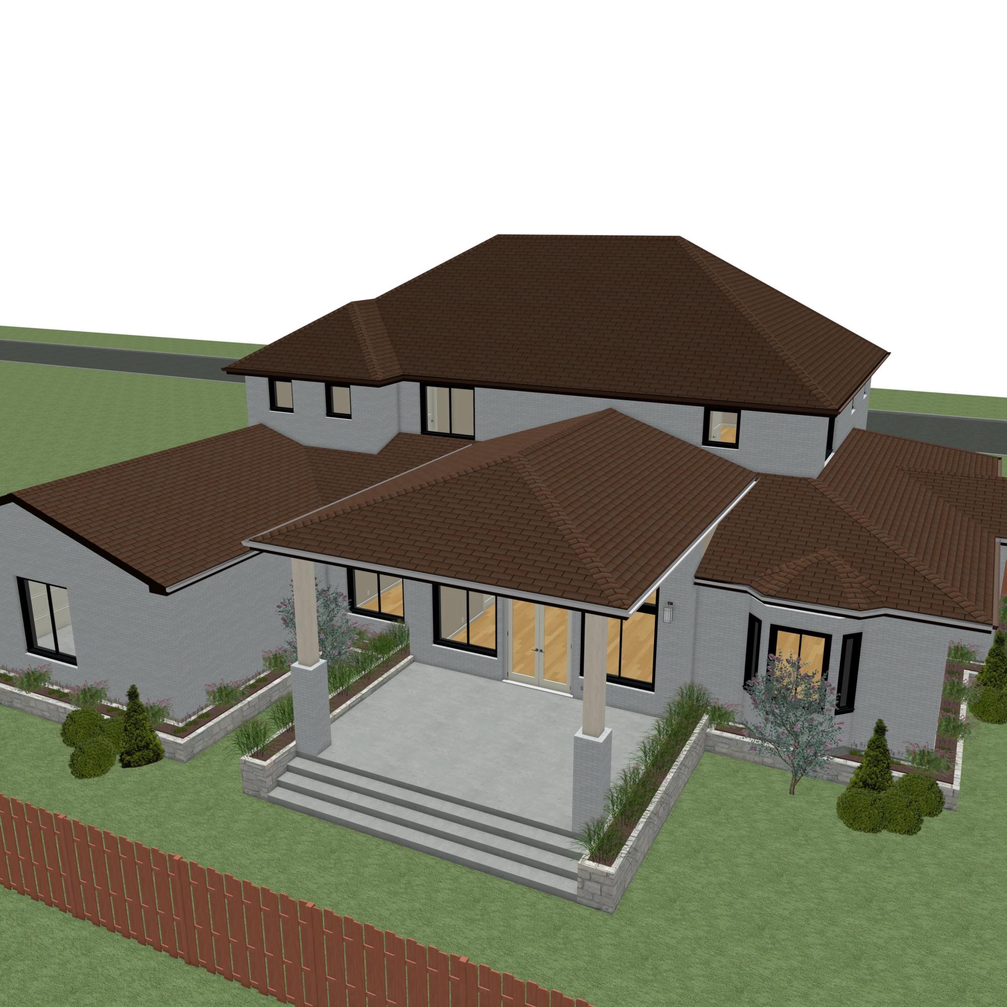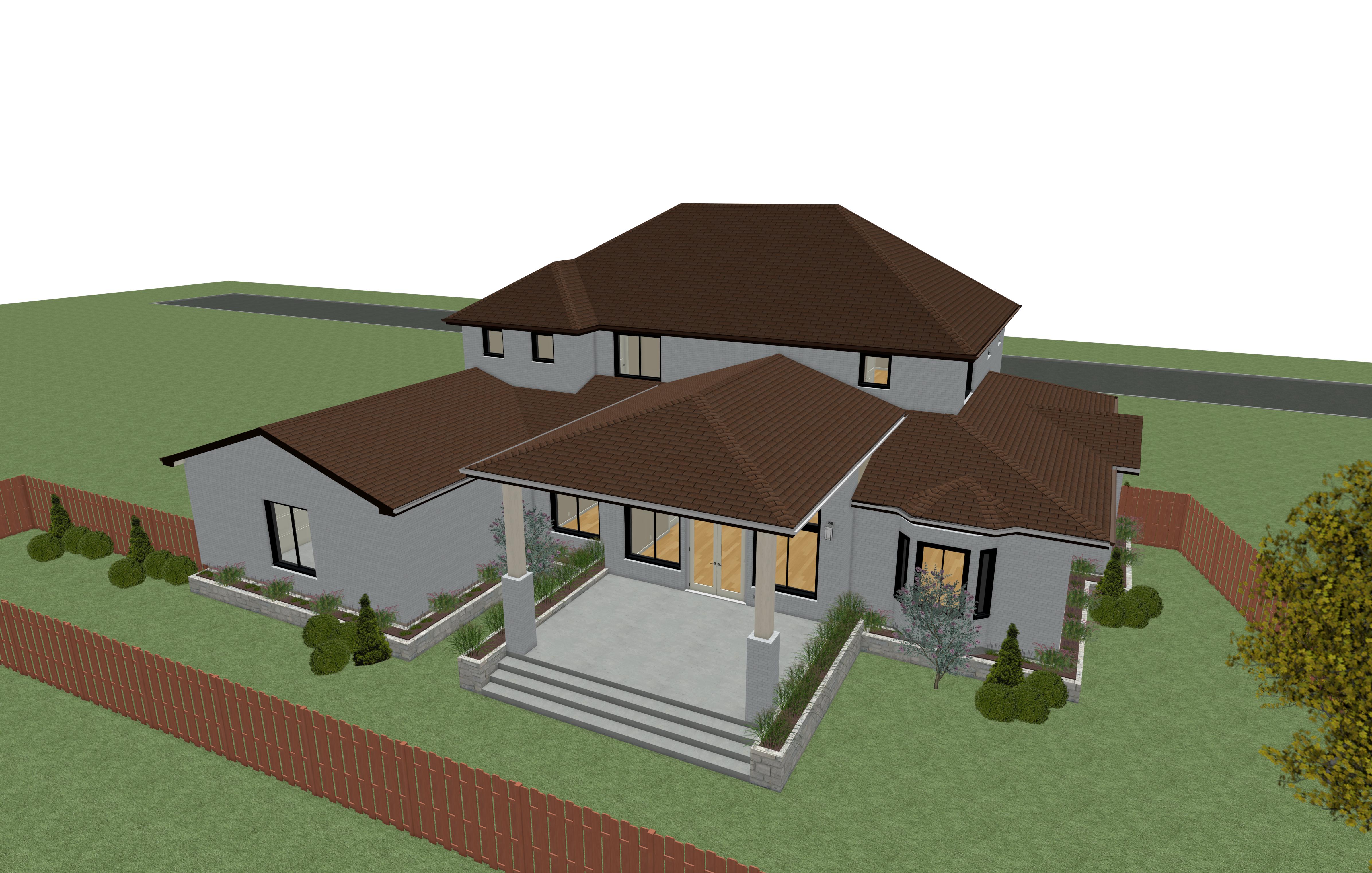 A 4.061 sq. ft. contemporary design home in Tyler, Texas for a modern family. It has an open floor plan with spacious living room with a fireplace; dining room with large windows and a french door that opens into a porch; study; eat-in kitchen with an island; laundry; pantry; master bedroom suite with spacious bathroom that has shower area, garden tub , his and her vanities and his and her walk-in closets; 4 additional bedrooms with attached baths and walk-in closets; media room; family room on 2nd floor; 3 car over-sized garage; an entry foyer, a front and a back porch.