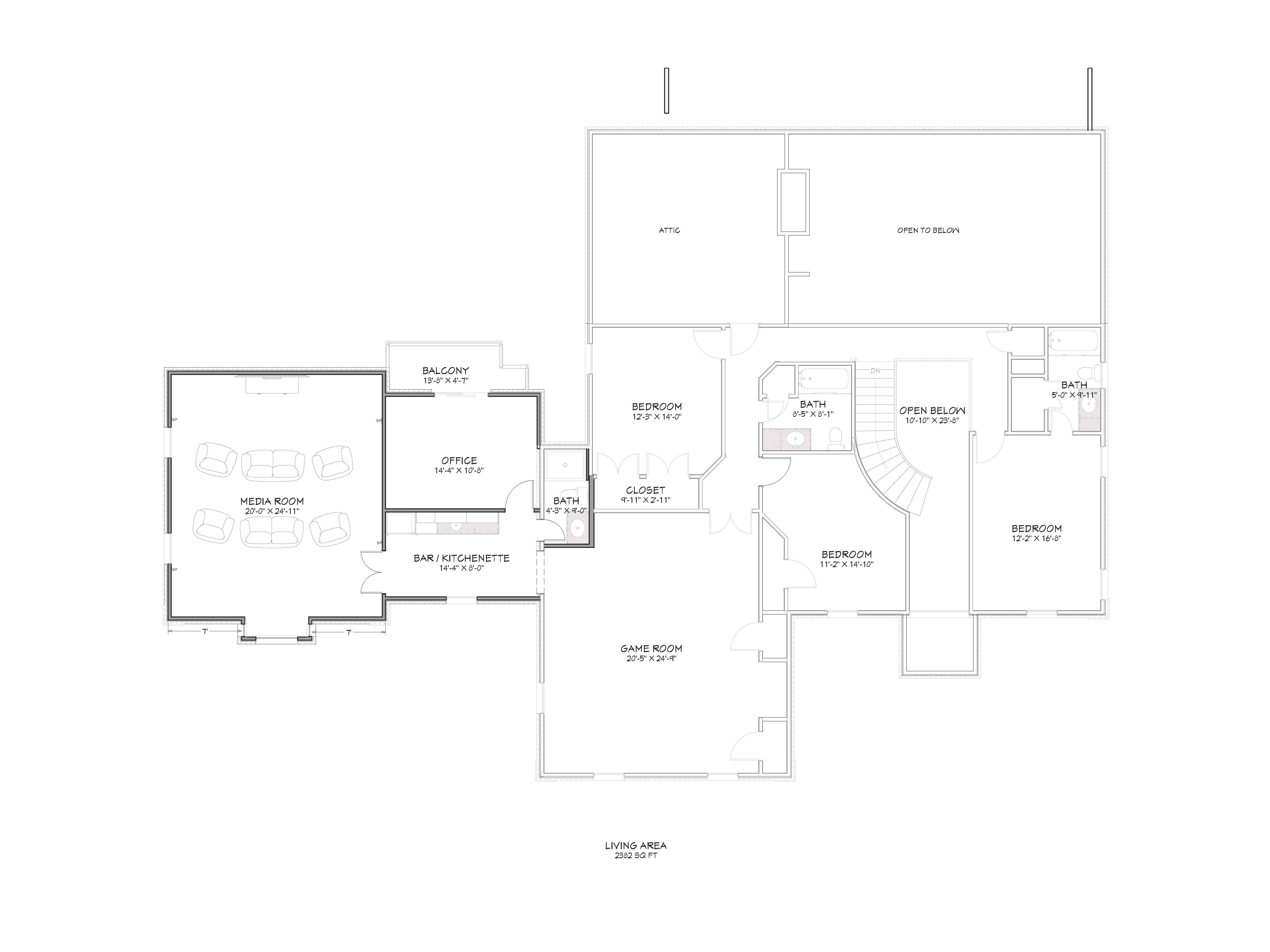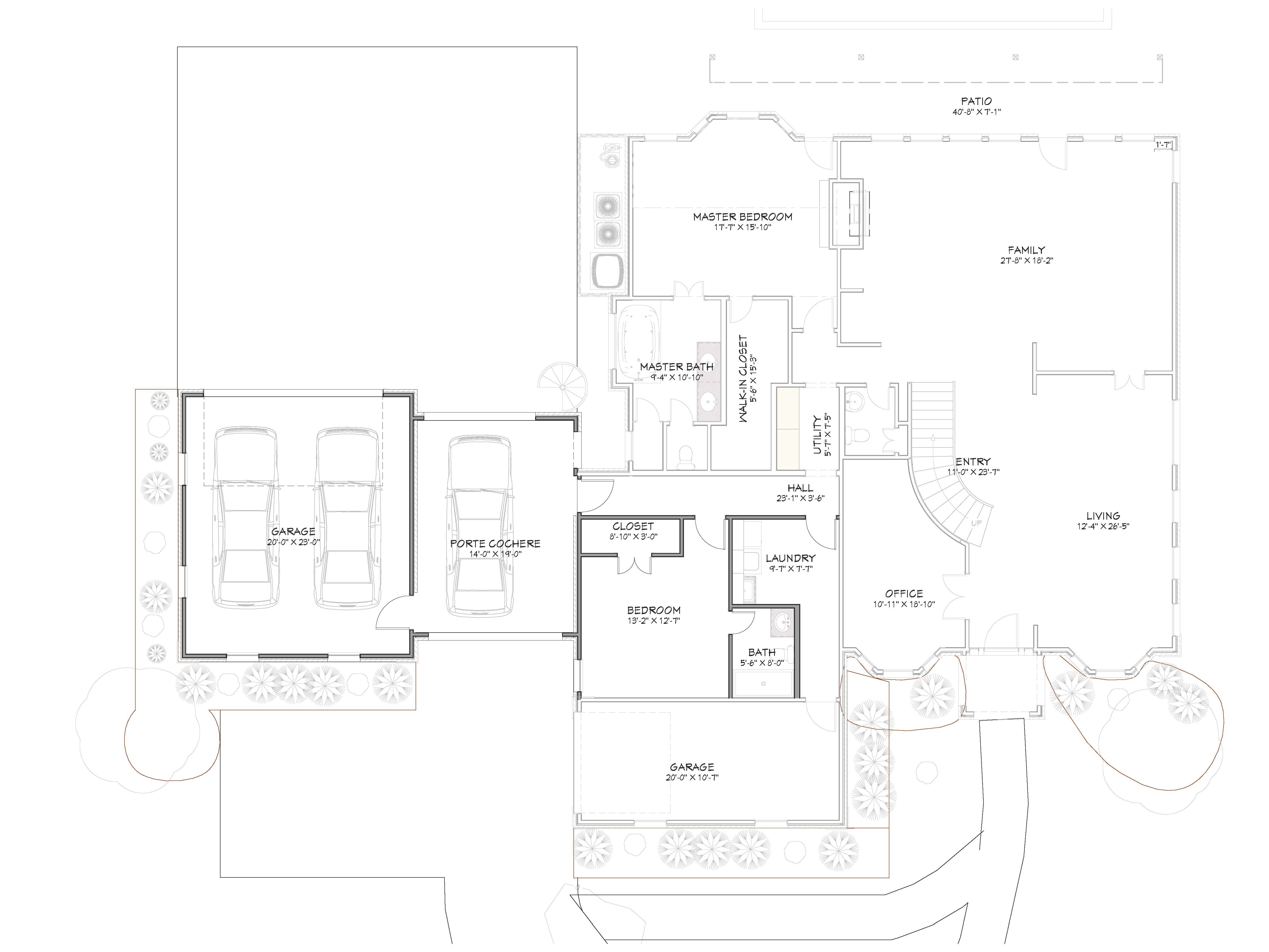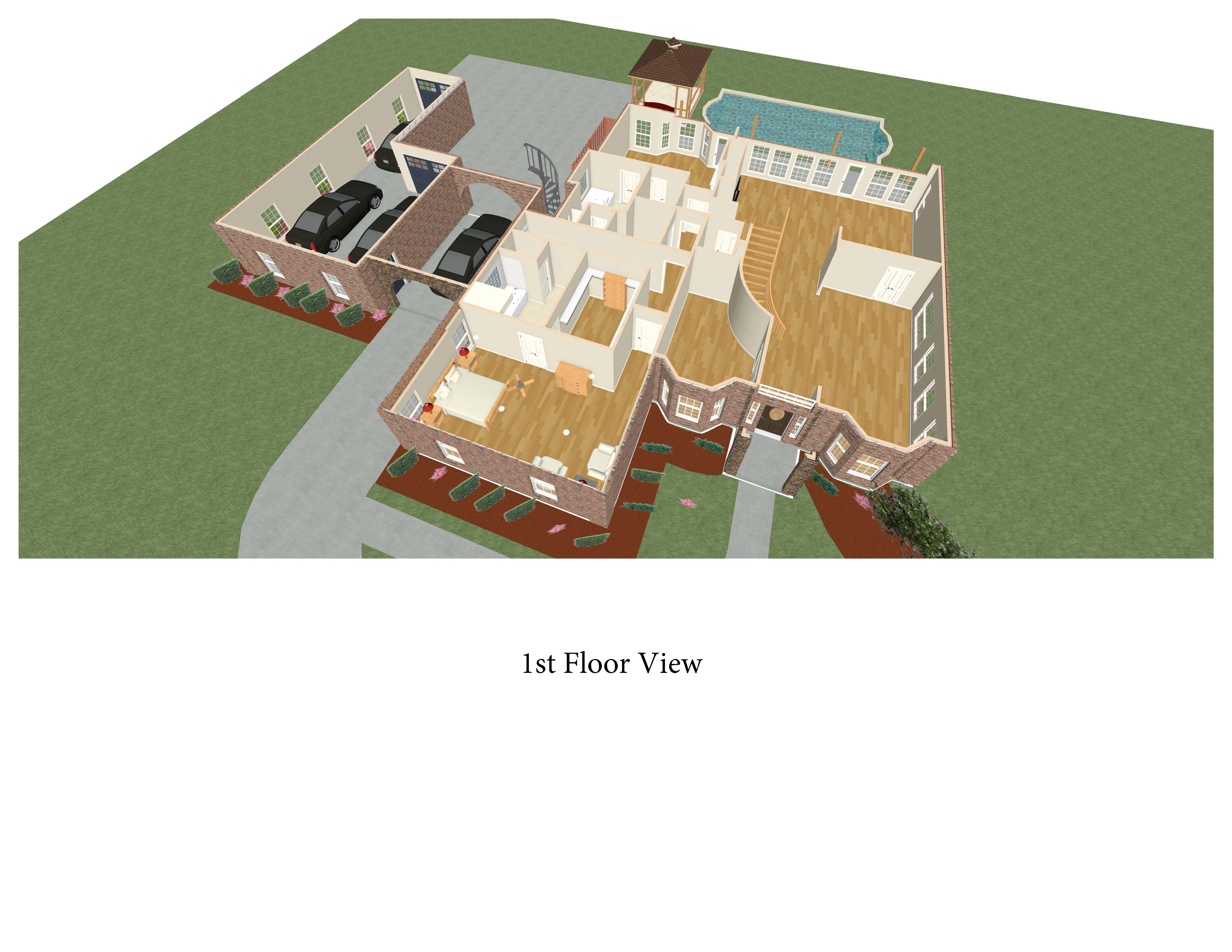 Remodeled the existing house and designed a 1632 sq. ft. addition. Converted existing garage into a bedroom, bathroom, and laundry. Added a two car garage with porte cochere on 1st floor and a media room, bar/kitchenette, office, bathroom, and a balcony on the 2nd floor.